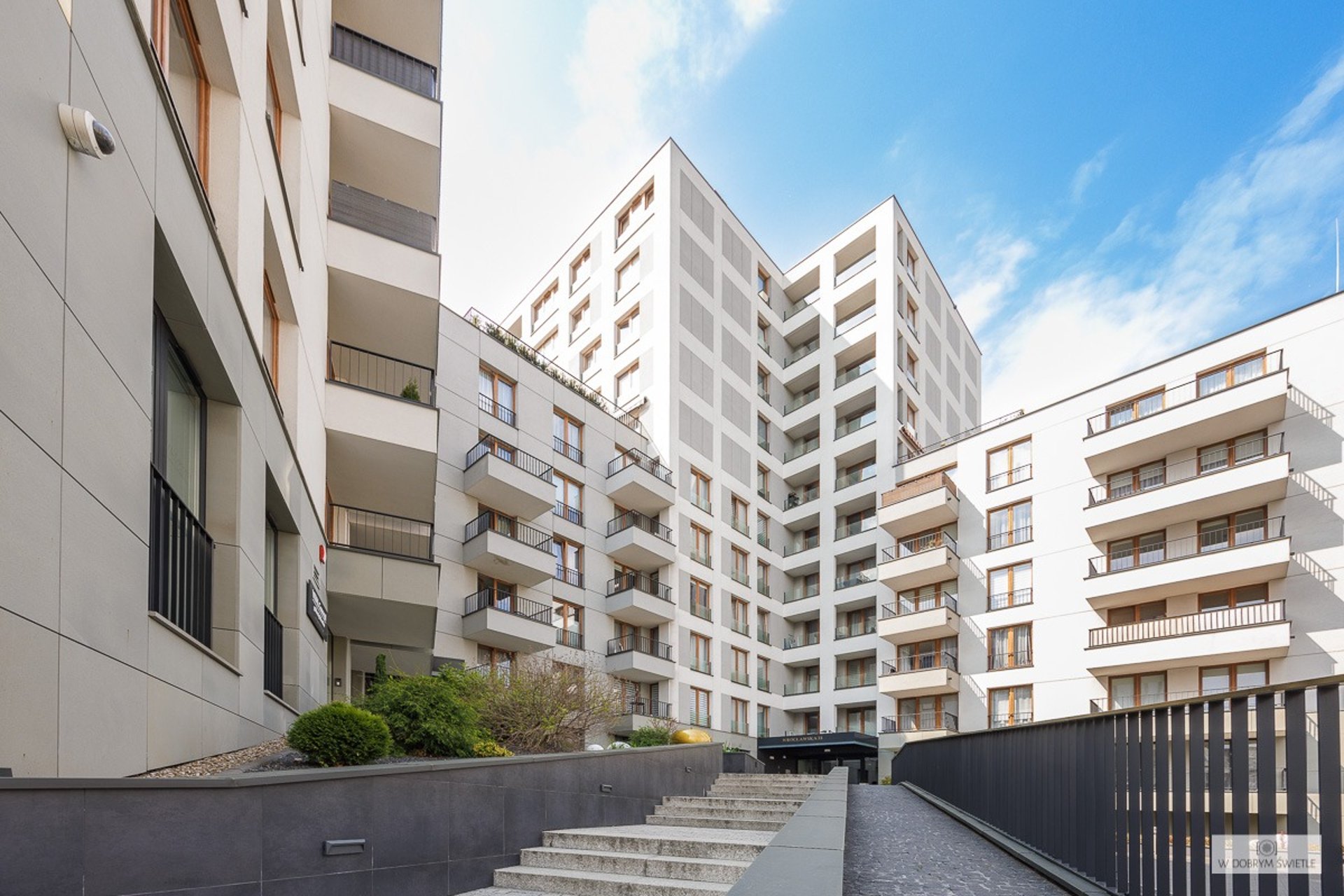 Logo with text W Dobrym Świetle Fotografia featuring a yellow sun symbol and camera lens frame.